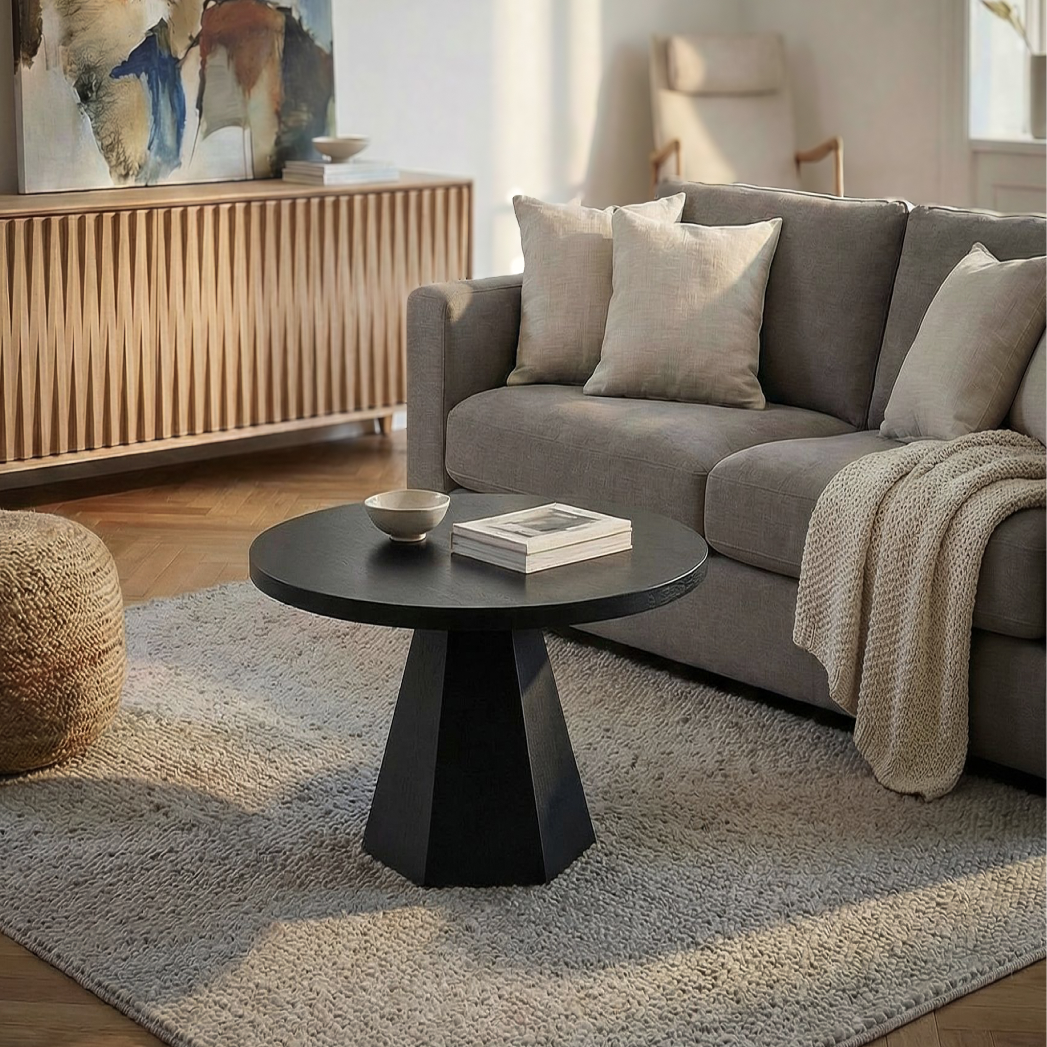Stolik BOLETE został wykonany z wysokiej jakości drewna, a jego powierzchnia została starannie wykończona fornirem dębowym lub w opcji, z orzecha amerykańskiego, dodając mu elegancji i trwałości. To połączenie materiałów nadaje mu ciepły i przyjemny charakter, pasujący zarówno do nowoczesnych, jak i klasycznych wnętrz.