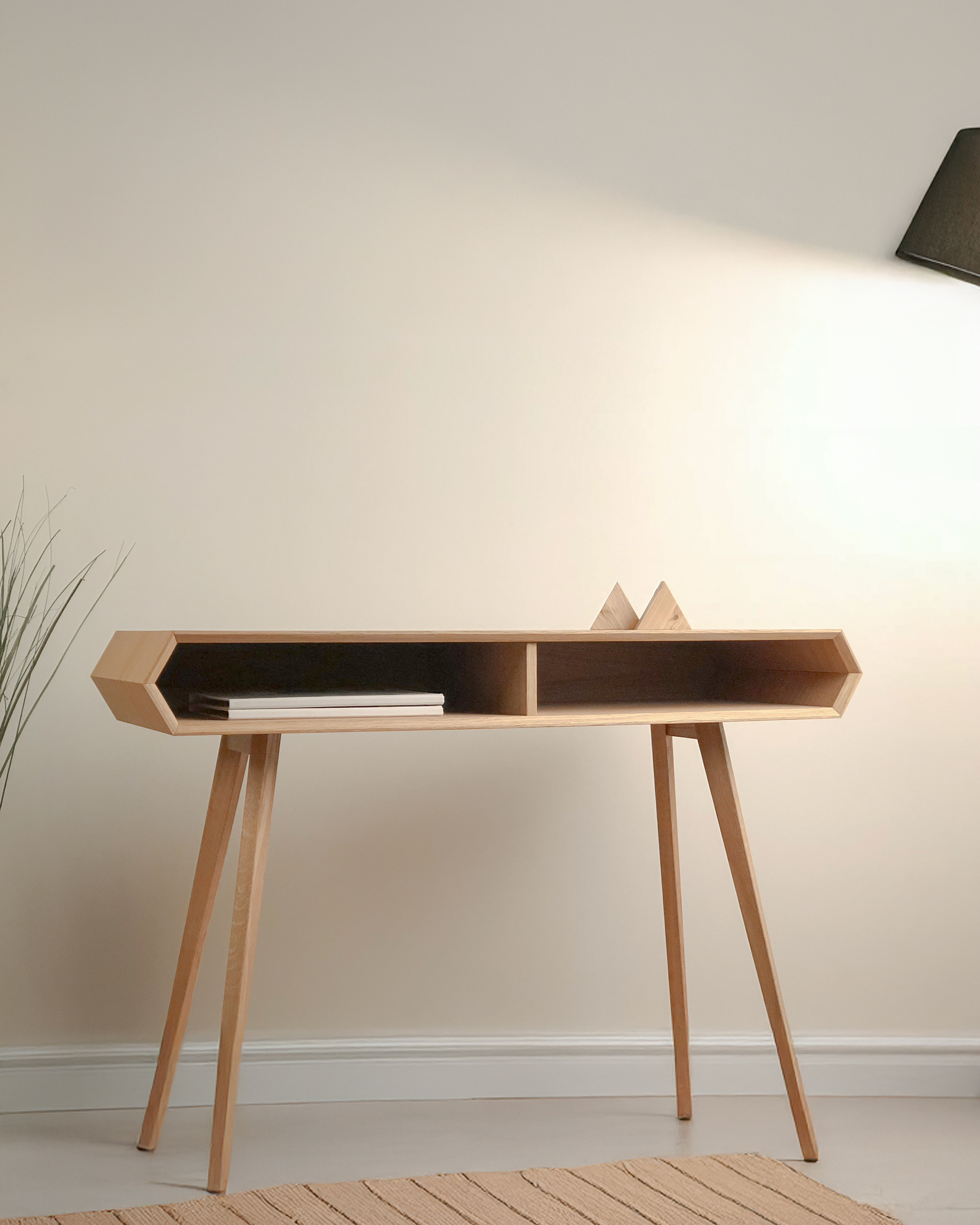 Biurko / konsola Honey Desk to świeża propozycja naszej manufaktury, która odmieni charakter każdego gabinetu. Mebel o formie zaczerpniętej wprost z natury pochodzi z najnowszej kolekcji MCASES. Łączy geometryczne wzory i miodowy nastrój. Inspiracją do jego stworzenia był motyw, zaczerpnięty wprost z pszczelego ula. Modne heksagony połączyły się, by zachwycać wyglądem i kusić praktycznością. Projekt chwali pożyteczną pracę pszczół, przypominając o równowadze pomiędzy karierą zawodową a życiem rodzinnym. Praca w otoczeniu znanych z natury form nabiera nowego wymiaru: jest przyjemna i bardziej wydajna. Krótka przerwa w biurze? Odpocznij, zamknij oczy i przenieś się na pełną kwiatów łąkę! Honey Desk wyznacza nowe trendy w designie gabinetów i przestrzeni biurowych.