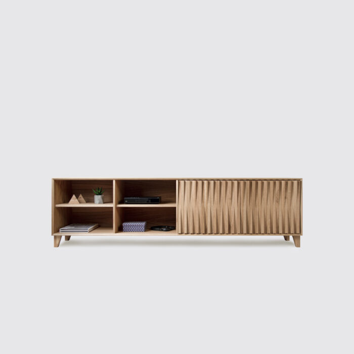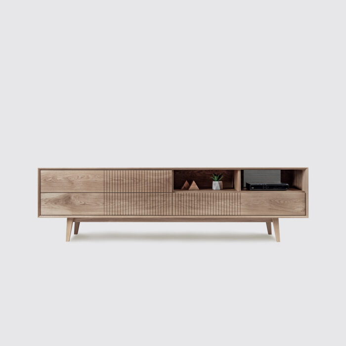 Materiały najwyższej klasy to znak rozpoznawczy wszystkich mebli drewnianych z manufaktury MCASES. Ta minimalistyczna komoda uwydatnia najlepsze cechy drewna dębowego.
