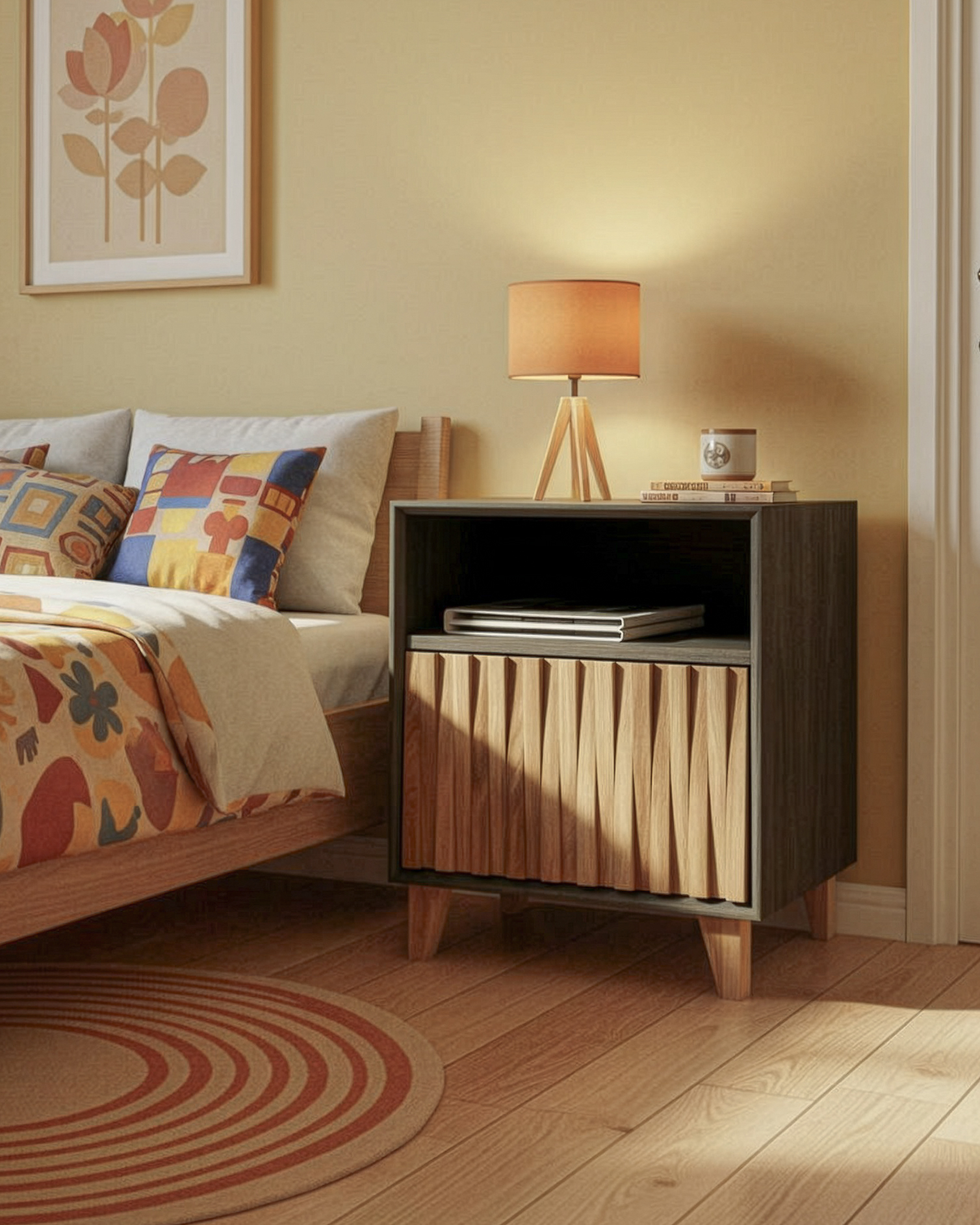 Heater Solo Black to prawdziwa indywidualistka. Niewielkie wymiary czynią z niej doskonały mebel do mniejszych wnętrz. Mimo kompaktowych rozmiarów jest niezwykle funkcjonalna. Trzy pojemne półki pomieszczą przedmioty, które lubisz mieć pod ręką. Na blacie zmieści się ulubiona książka, lampka nocna, telefon i budzik w stylu retro. Meble z serii Heater łączą się w ciekawe zestawy do pokoju dziennego. Odpoczynek w towarzystwie sióstr z rodziny Heater będzie czystą przyjemnością.