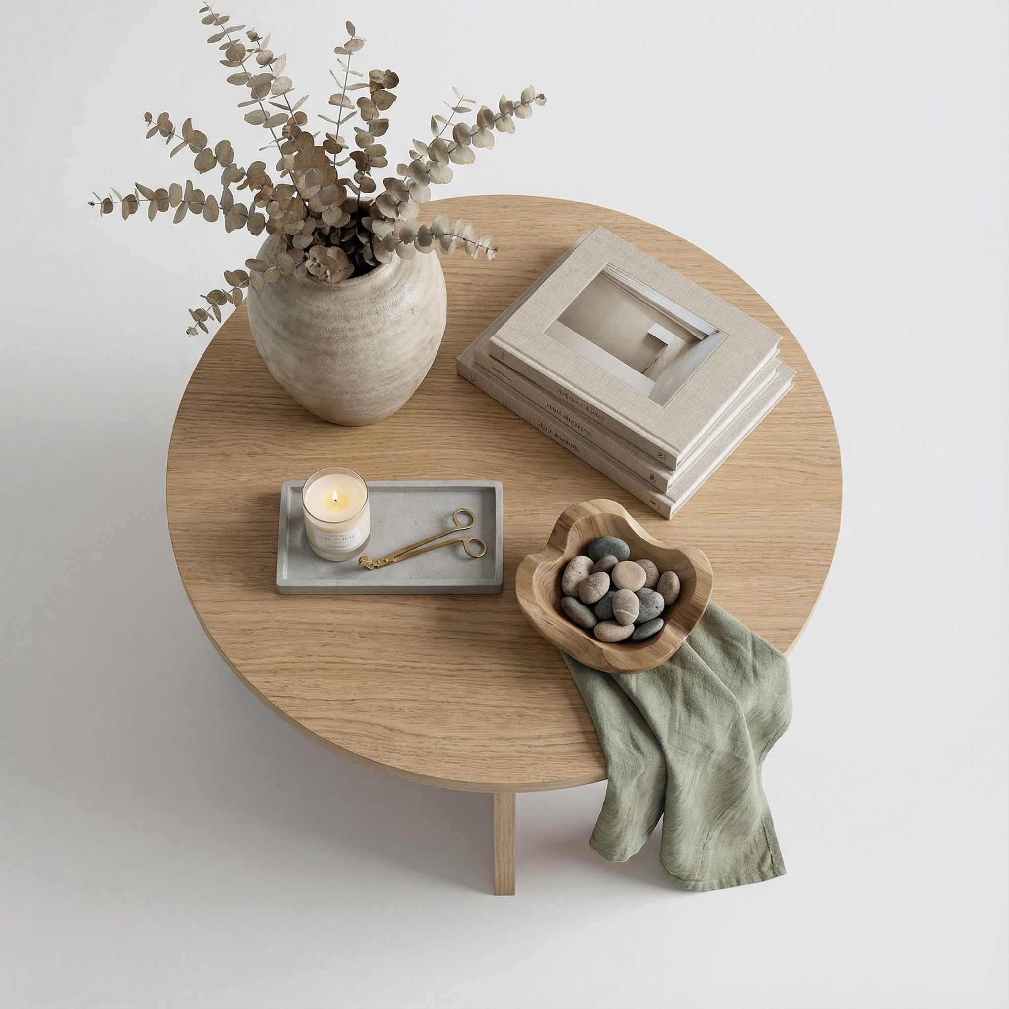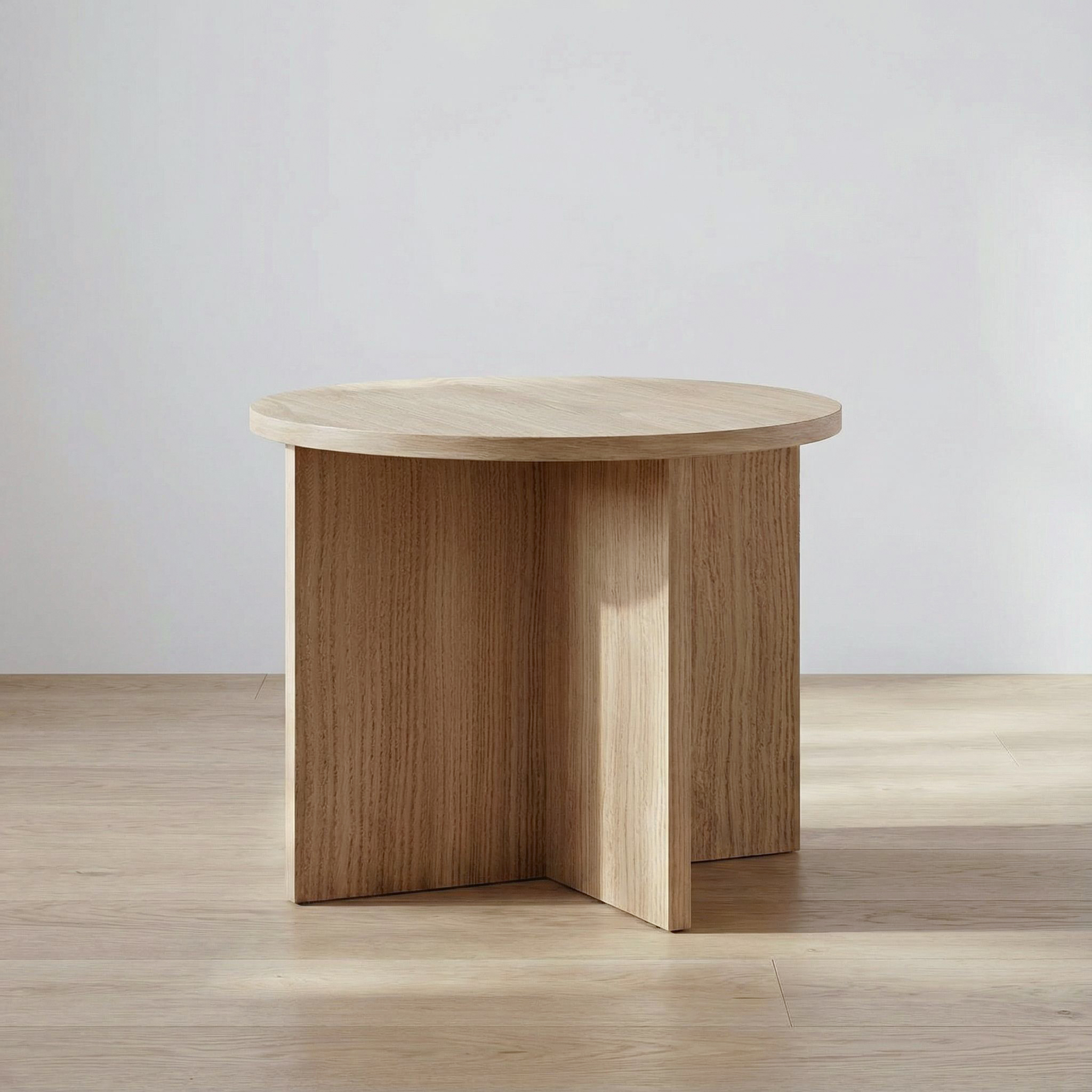 Podstawa stolika, tworząca stabilny krzyżyk, nawiązuje do japońskiej sztuki prostoty i równowagi. Dębowa faktura blatu wprowadza natomiast element przytulności, charakterystyczny dla skandynawskiego wzornictwa. Dzięki temu ten stolik jest doskonałym wyborem dla miłośników harmonijnych, zrównoważonych wnętrz, w których naturalne materiały i spokój formy współgrają ze sobą w doskonałej równowadze.