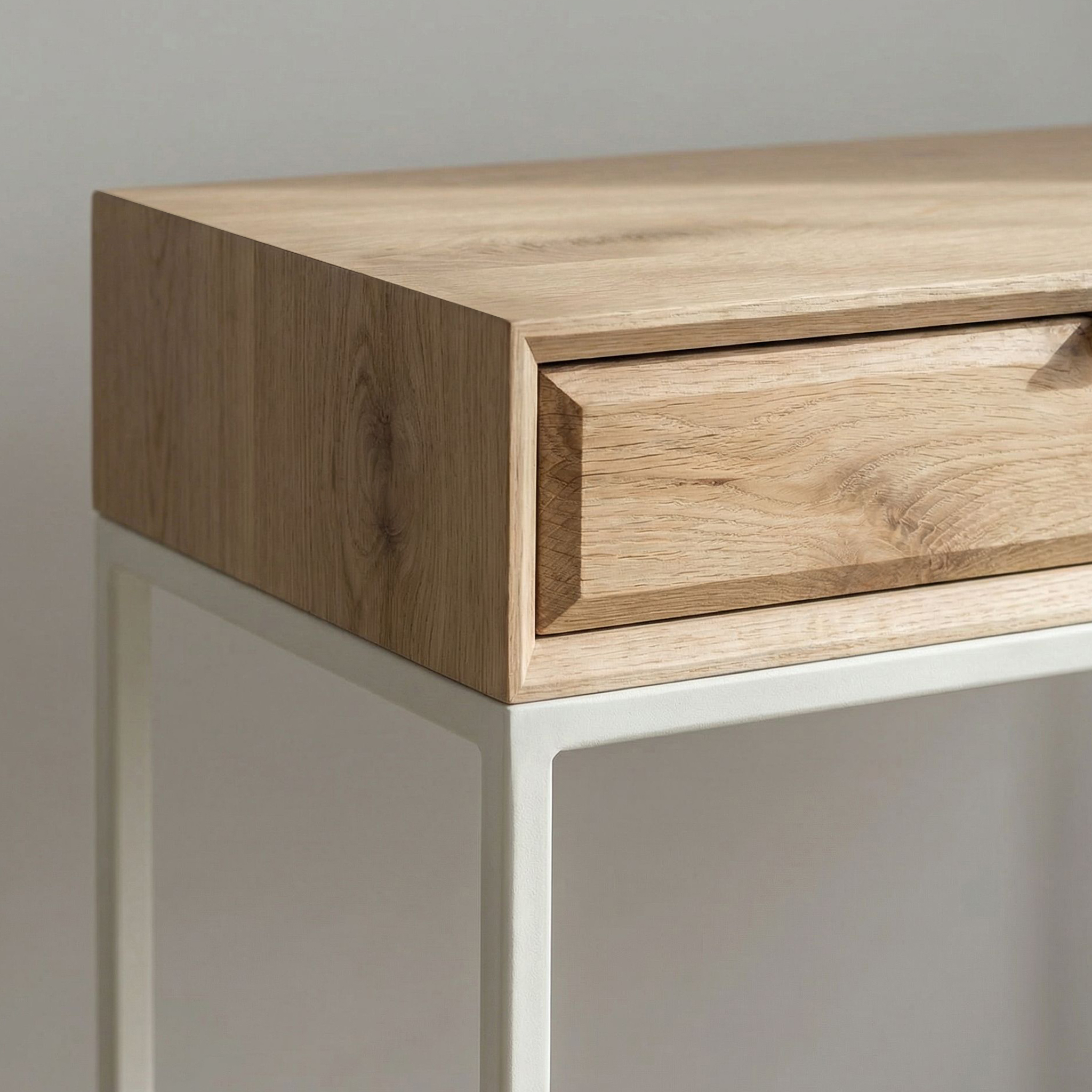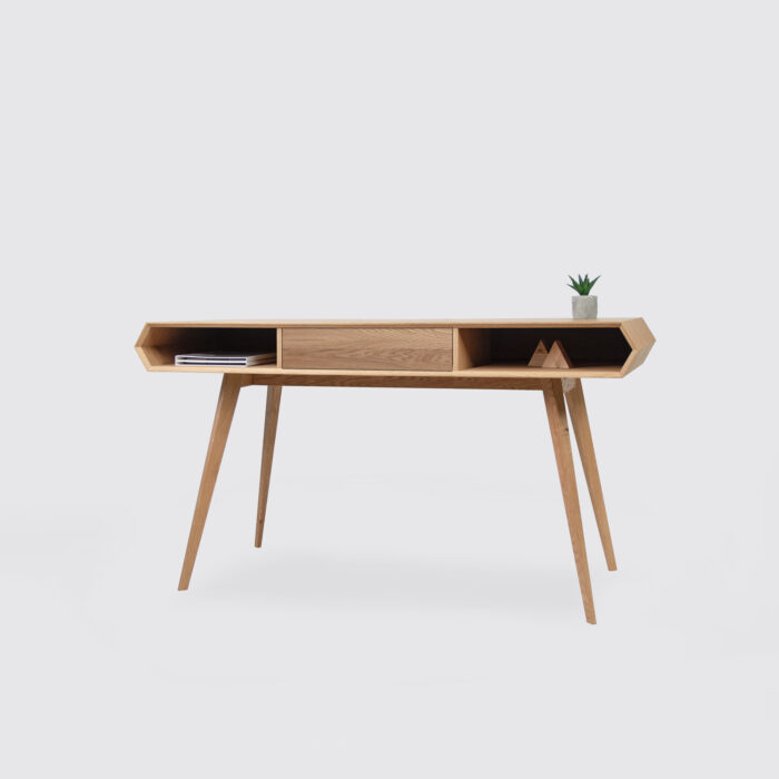 Toaletka wykonana jest w całości z litego drewna dębowego i osadzona jest na solidnej stalowej ramie, pomalowanej proszkowo.